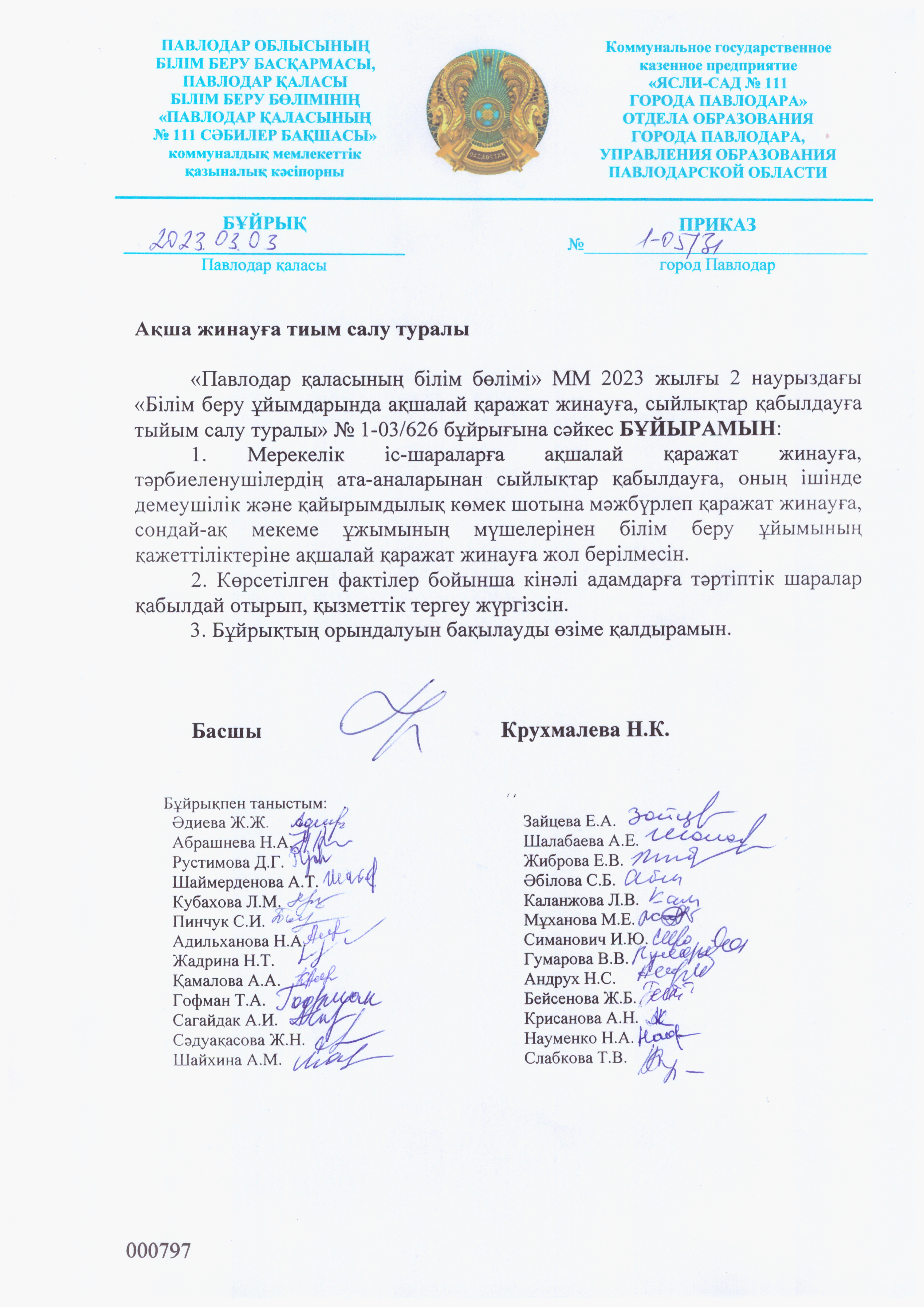 О запрете сбора денежных средств | Скачать |