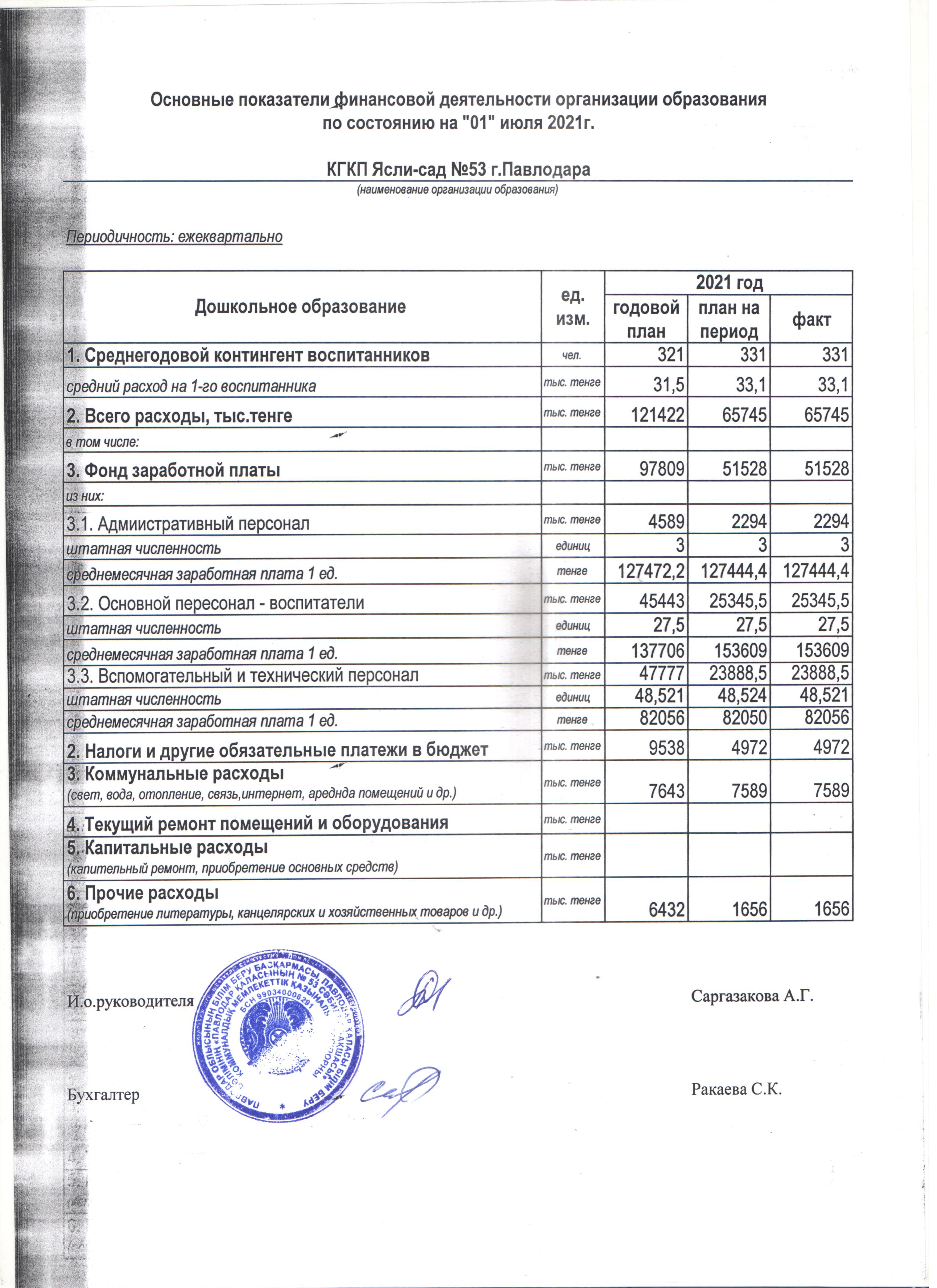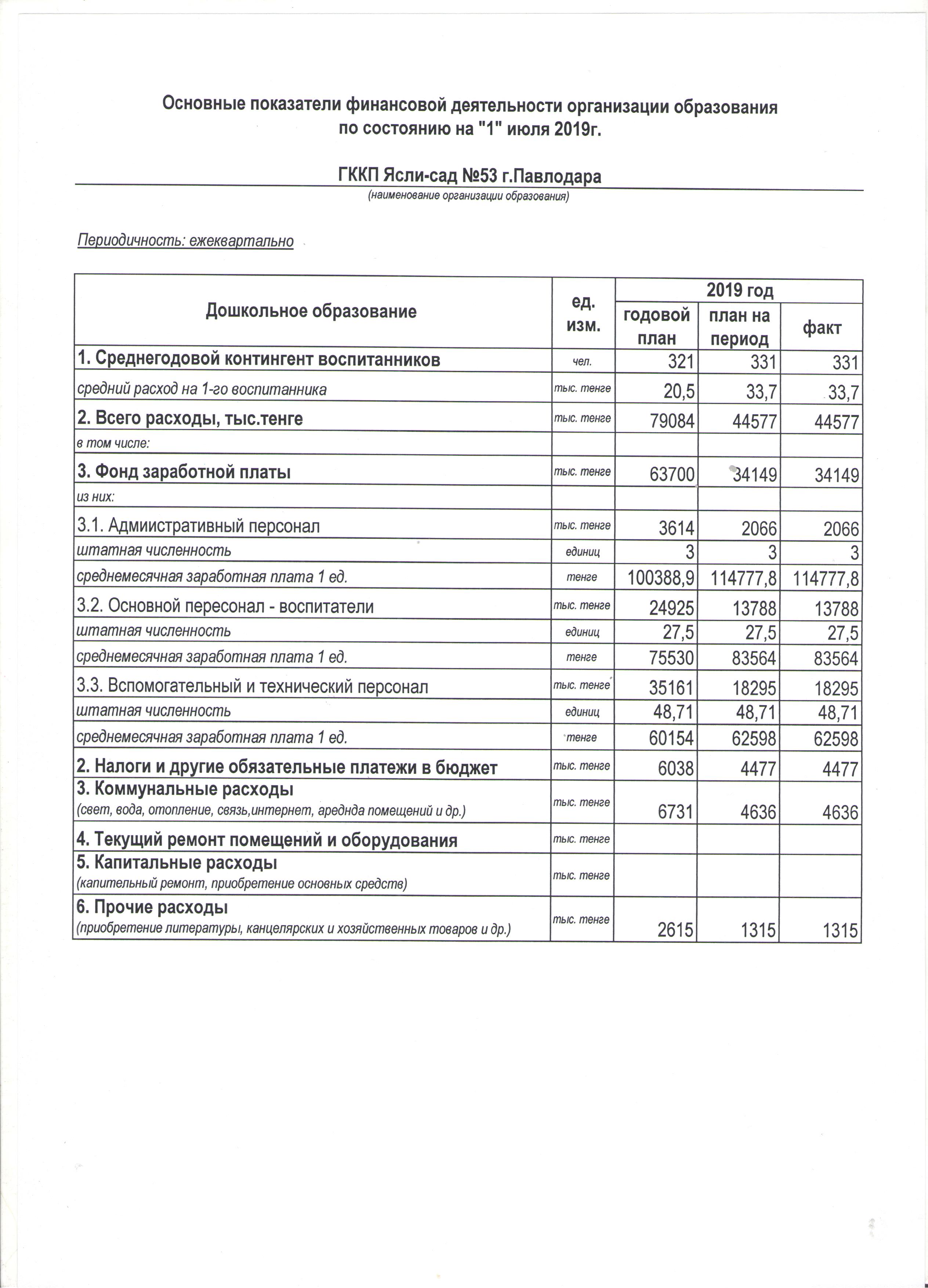 Основные показатели финансовой деятельности организации образования по состоянию на 1 июля | Скачать |