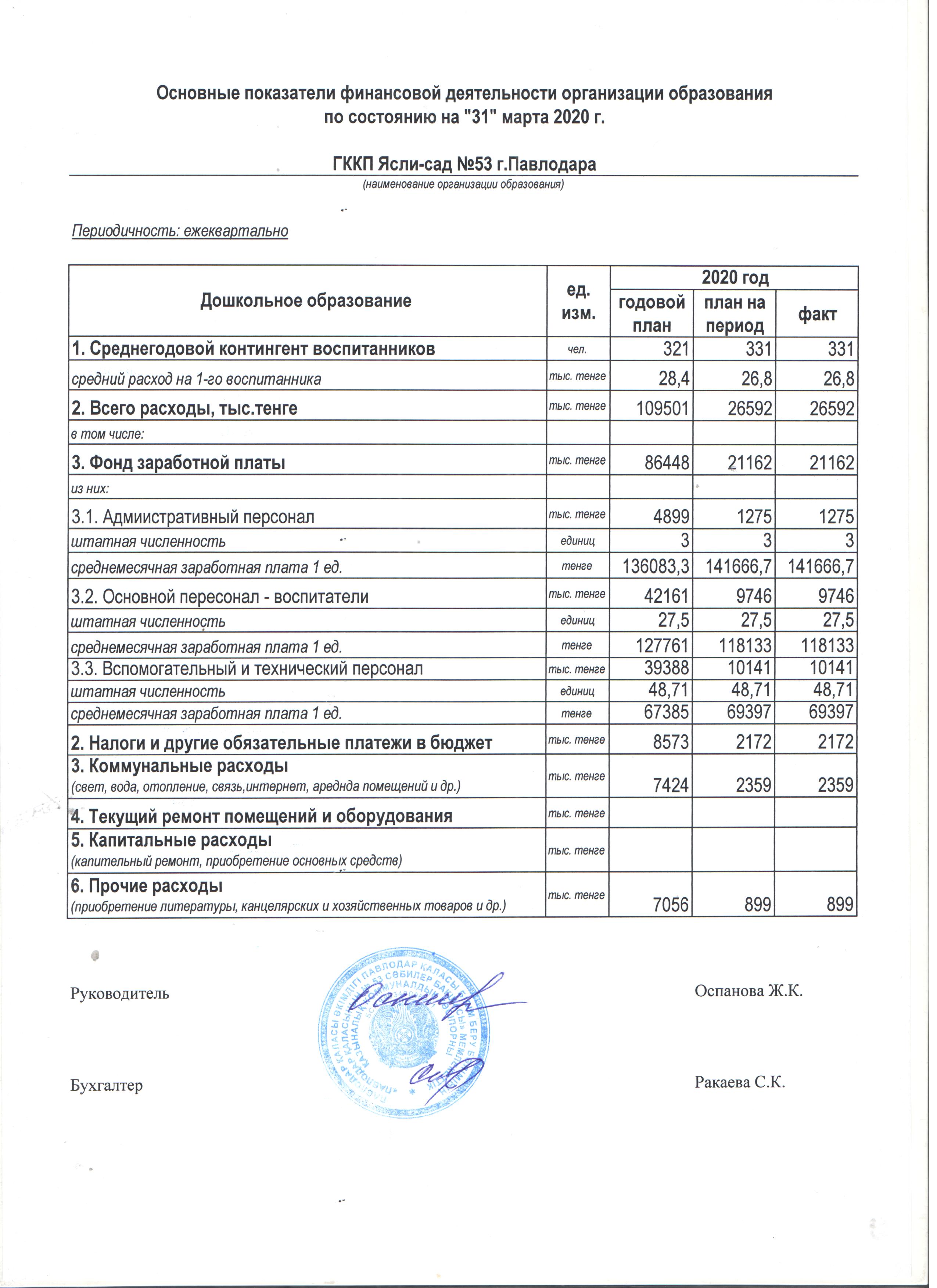 Основные показатели финансовой деятельностиорганизации образования по состоянию на 31 марта 2020 г. | Скачать |