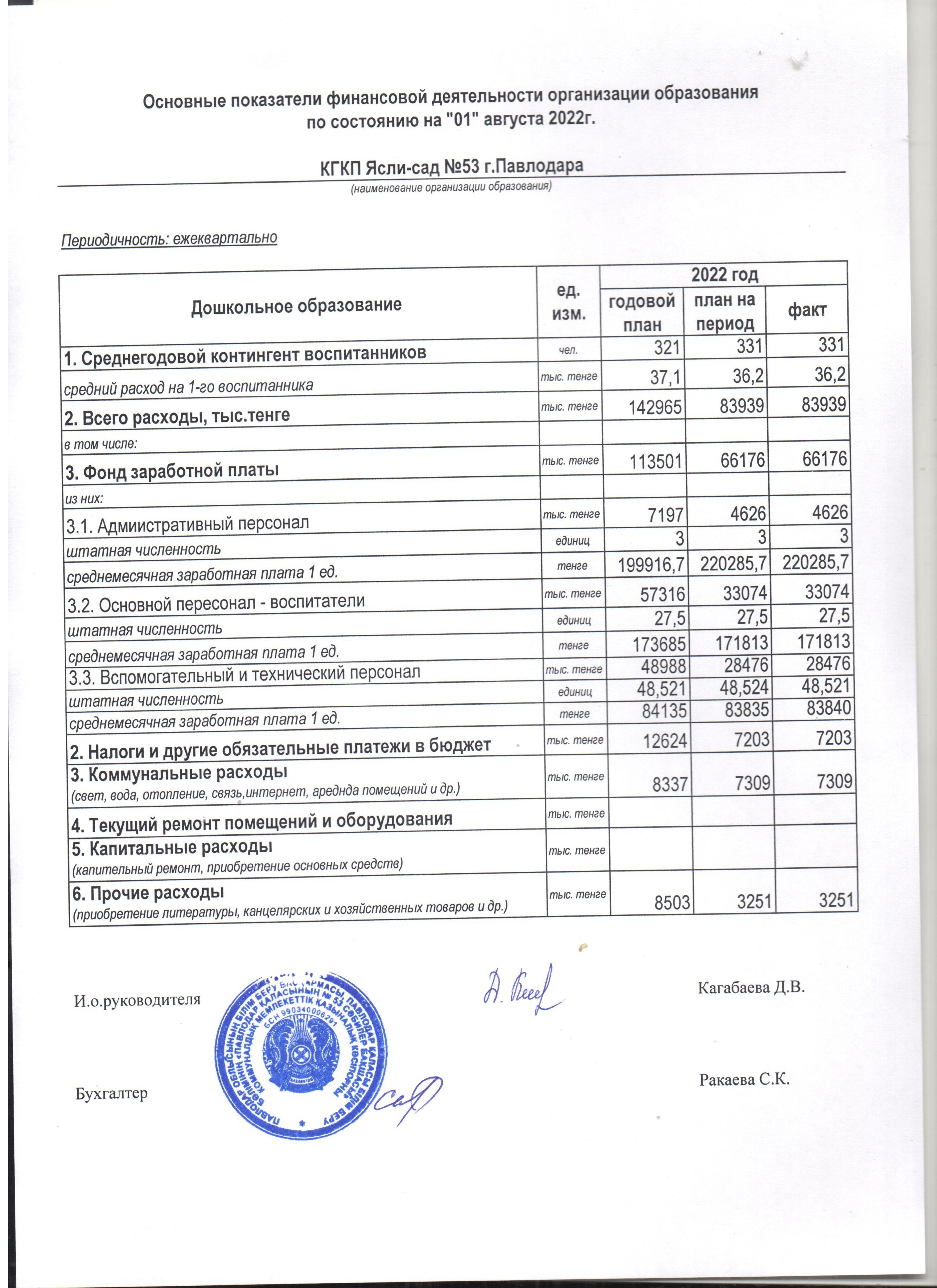 Основные показатели финансовой деятельности организации образования по состоянию на 2022 год | Скачать |