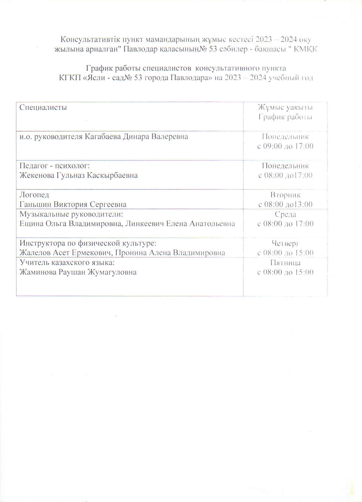 План работы консультативного пункта