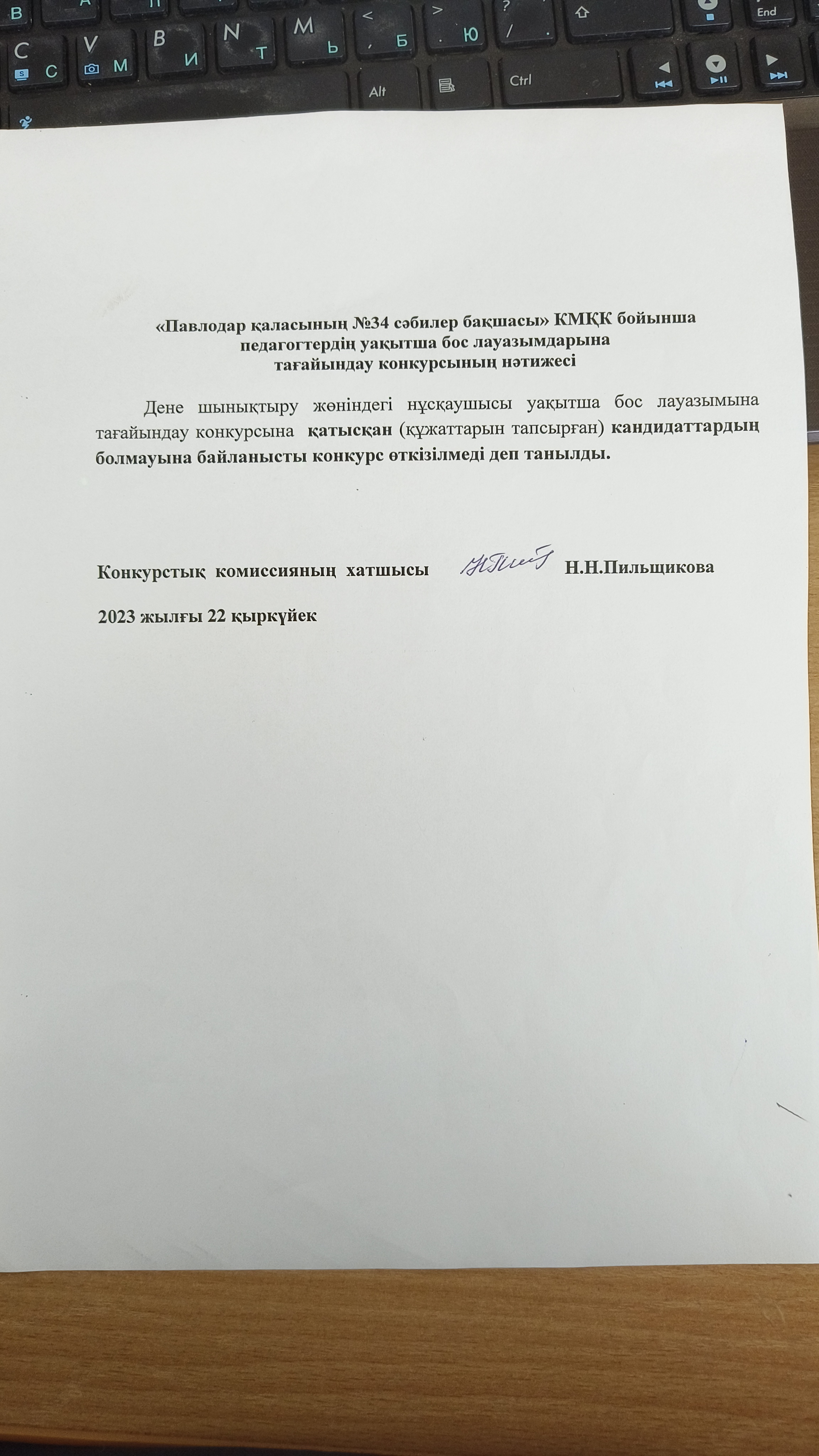 Павлодар қаласы білім беру бөлімінің Павлодар қаласының №18 сәбилер бақшасы КМҚК әдіскелер бос лауазымына бойынша конкурстың натижелері | көшіріп алу қарау |