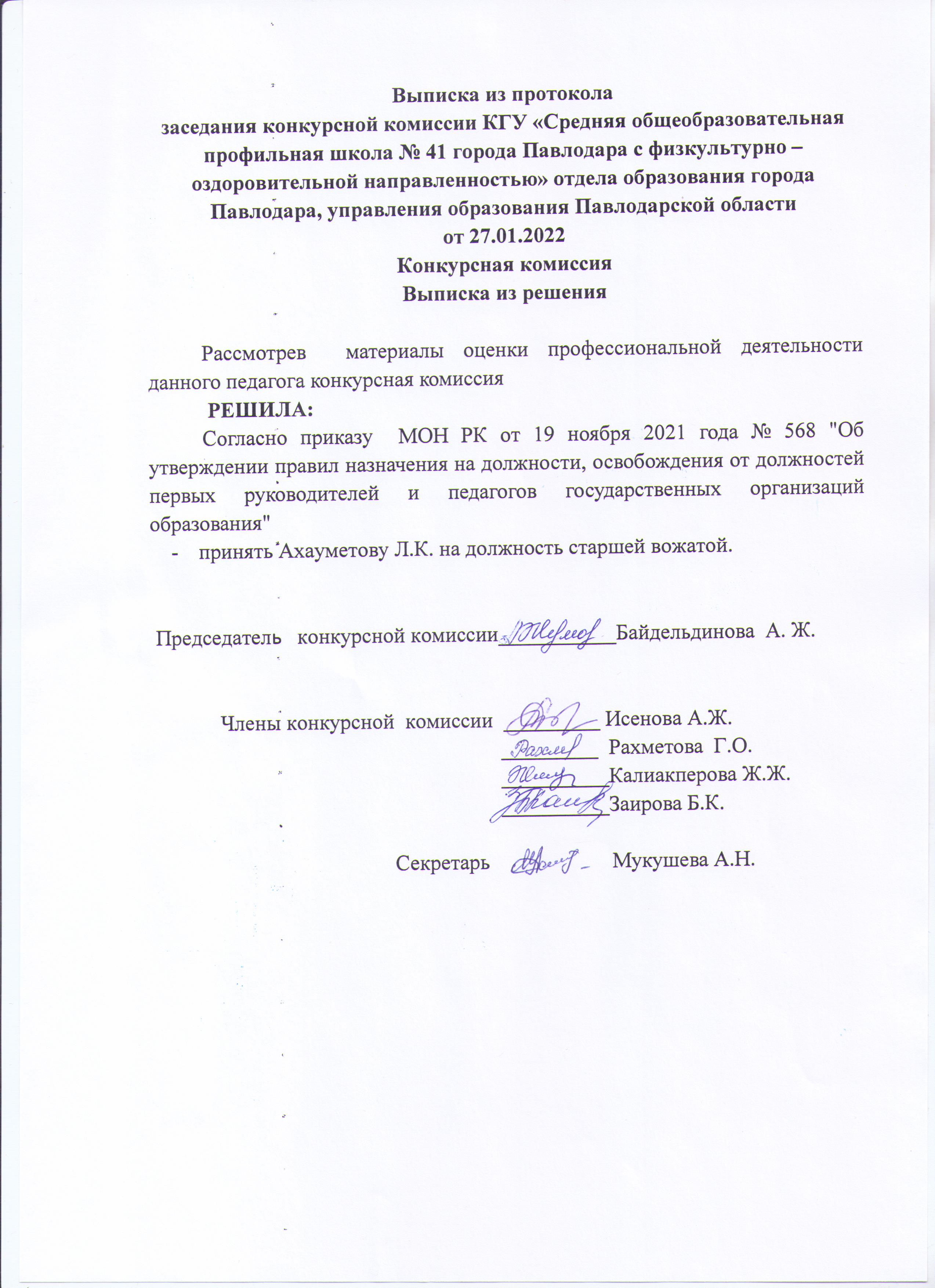 Аға тәлімгер бос лауазымына Ахауметова Л.К. тағайындалды. | көшіріп алу қарау |