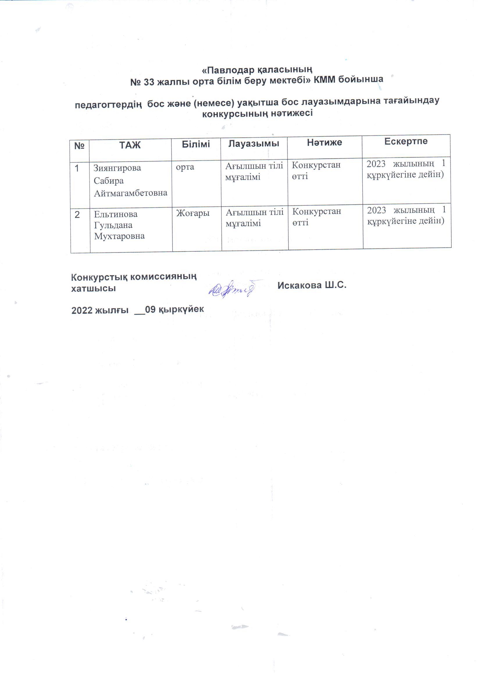 №33 ЖОМ Бос лауазымға конкурс қорытындысы 09.09.2022 | көшіріп алу |