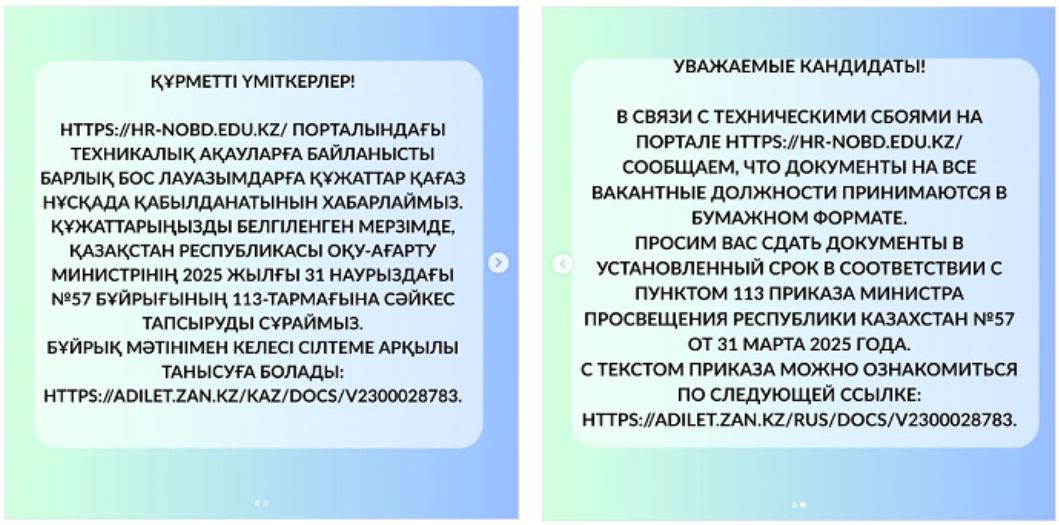 Маңызды ақпарат: Бос орындарға құжаттар қағаз түрінде қабылданады | көшіріп алу |