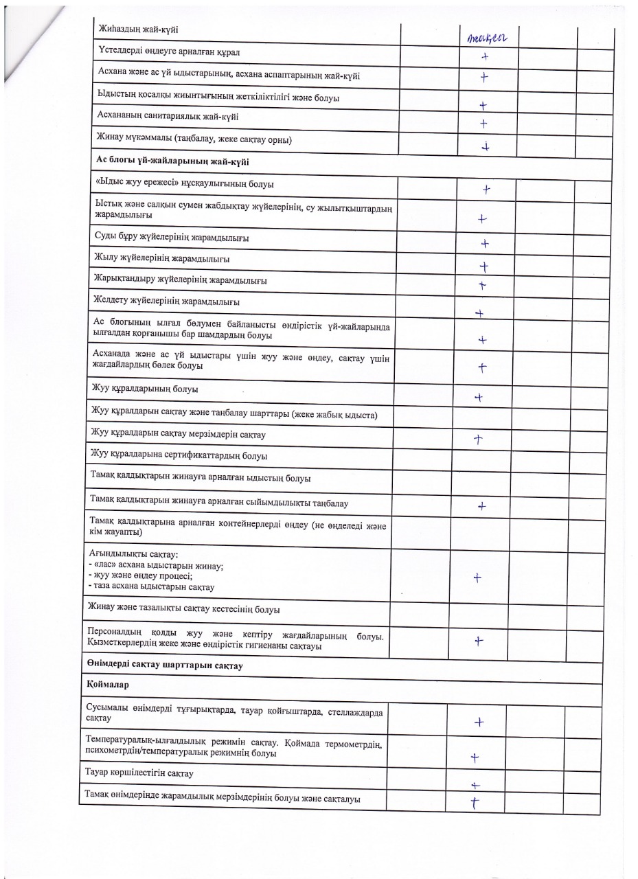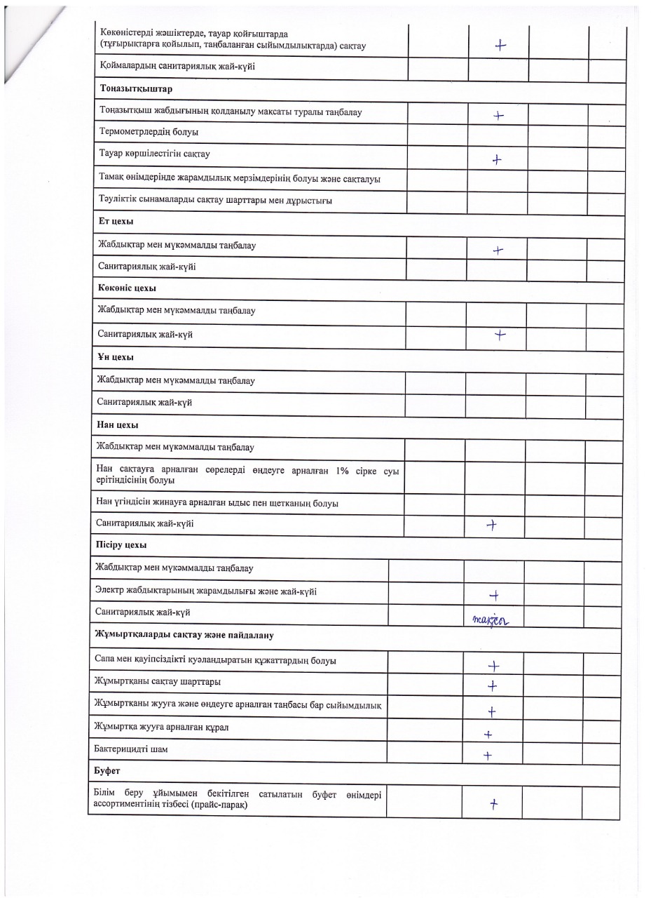 Тамақтану сапасына мониторинг жүргізу актісі