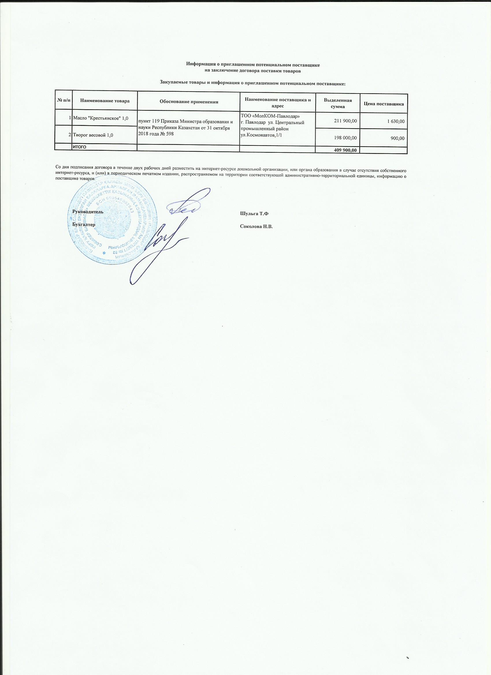 Информация о приглашенном поставщике ТОО МолКомПавлодар 02.10.2019 | көшіріп алу |
