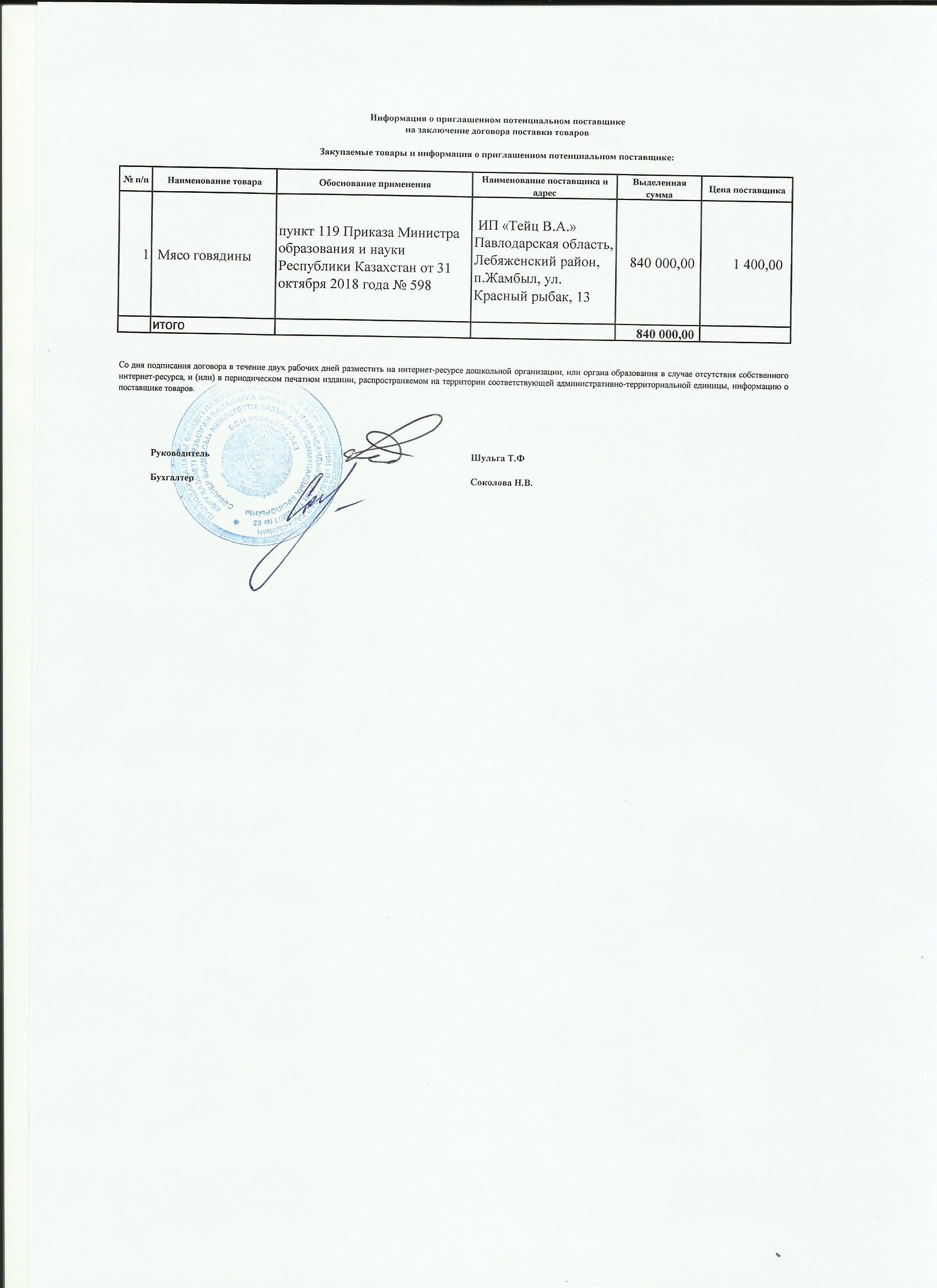 Информация о приглашенном поставщике ИП Тейц 02.10.2019 | көшіріп алу |