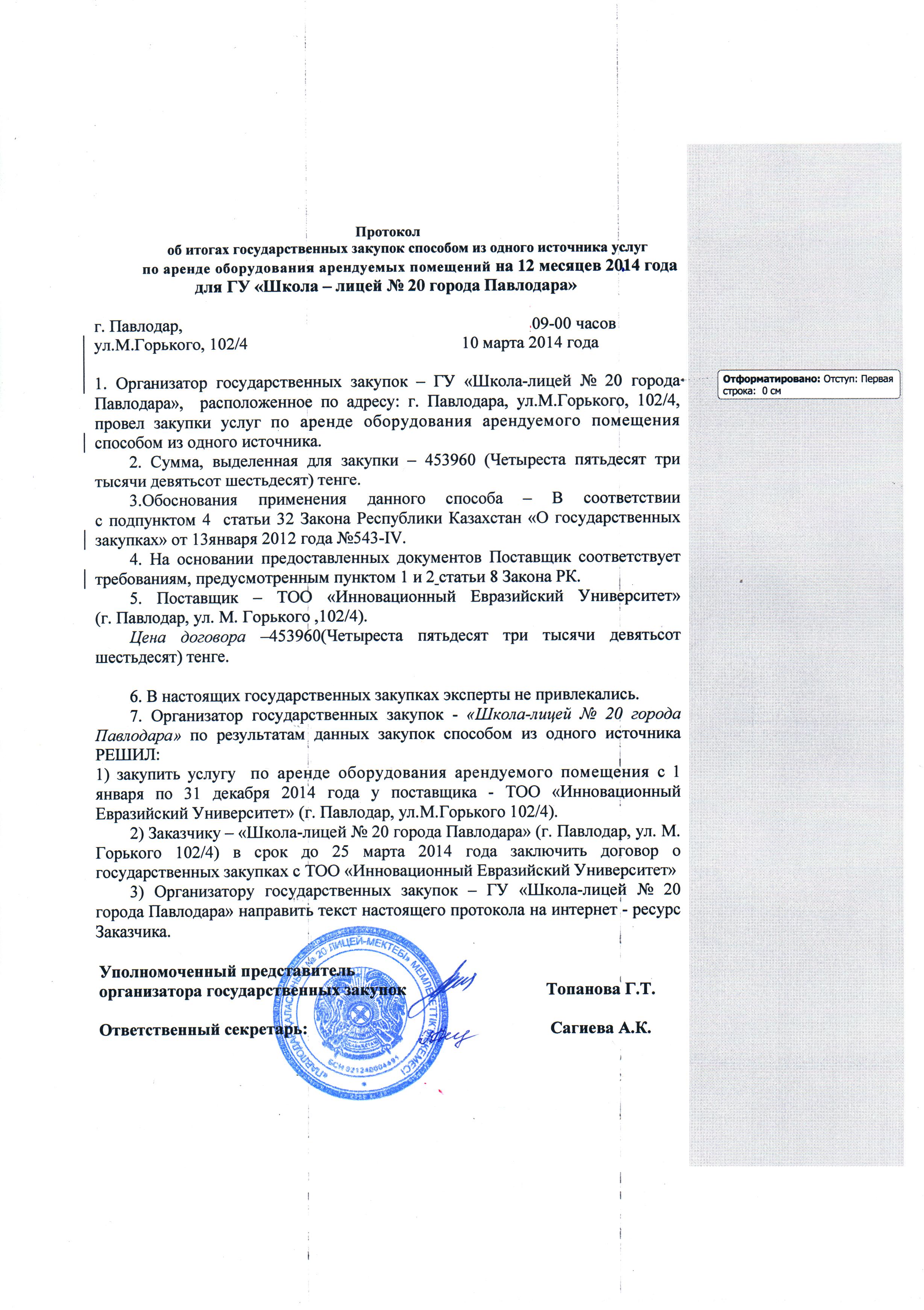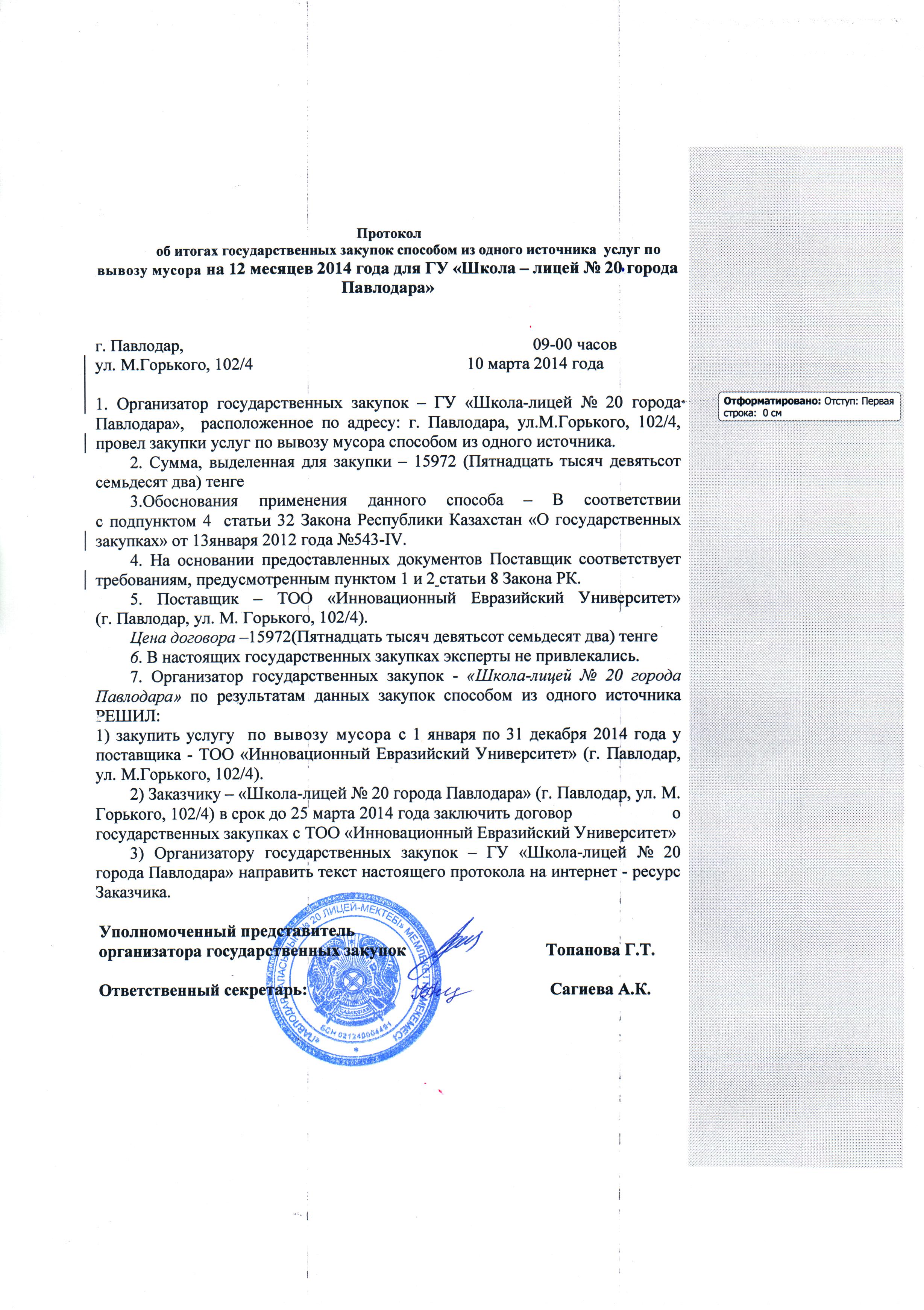 Протокол об итогах государственных закупок